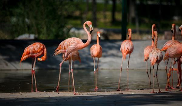 習性:火烈鳥棲息于人跡罕至的寬闊淺水域。常結(jié)成數(shù)幾萬至幾十萬只的大群一起生活,在淺灘用蘆葦、雜草、泥灰營造圓錐形巢穴。性機警、溫和,善游泳,但很少到深水域,飛行慢而平穩(wěn)。以水中甲殼類、軟體動物、魚、水生昆蟲等為食。