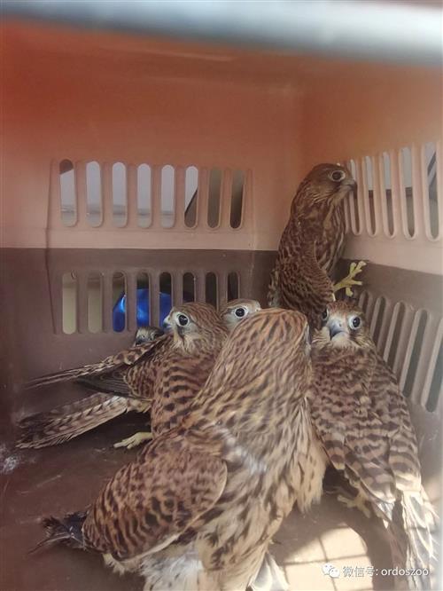 本次共放飛6只紅隼和2只雕鸮,都屬于國家二級(jí)保護(hù)動(dòng)物。5只紅隼是準(zhǔn)格爾旗第一派出所救護(hù),當(dāng)時(shí)村民自家附近樹下發(fā)現(xiàn)5只剛出窩的幼鳥,派出所接收后立即聯(lián)系我站進(jìn)行了救護(hù)。另外1只紅隼是由東勝區(qū)幸福街派出所救護(hù),當(dāng)時(shí)紅隼虛弱,無法飛行,趴臥在地上,隨即聯(lián)系我站進(jìn)行了救護(hù)。