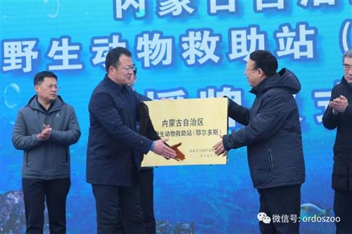 內(nèi)蒙古自治區(qū)農(nóng)牧廳副廳長(zhǎng)趙永華為內(nèi)蒙古自治區(qū)水生野生動(dòng)物救助站進(jìn)行授牌,鄂爾多斯野生動(dòng)物園董事長(zhǎng)王曉宇代表鄂爾多斯進(jìn)行接牌。