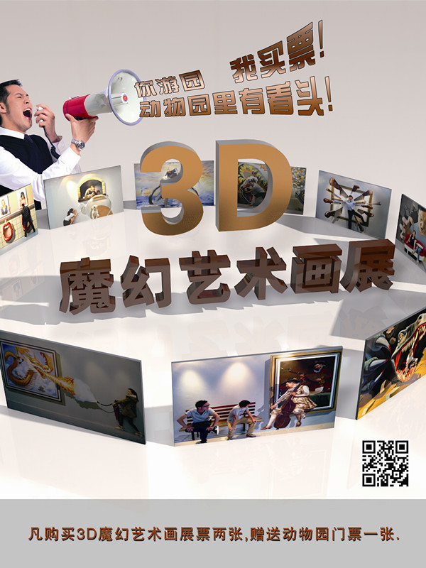 3D畫展是一種新穎的互動(dòng)性展覽,不僅可以看,還可以玩。進(jìn)入展區(qū),出現(xiàn)真人和畫面融為一體的奇特效果,這是一個(gè)老少皆宜的展覽,讓您真正體驗(yàn)到 “拉”大象鼻子、與長(zhǎng)頸鹿“親吻”,拿起魚竿釣兇猛的鱷魚,與偉人“握手”,與外星人 “交手”,牽著恐龍走,臥坐鯊魚嘴等等現(xiàn)實(shí)生活很難實(shí)現(xiàn)的猶如真實(shí)感受。3D魔幻藝術(shù)最大優(yōu)點(diǎn)在于面向大眾,追求最富有樂趣的互動(dòng)性,可以說是最有親和力的一種藝術(shù)展覽形式。無論是智力開發(fā)期的兒童、還是熱戀中情侶,亦或是家庭,都有不得不來的理由。只要半小時(shí)就可以玩到high!現(xiàn)在體驗(yàn),還可以享受“體驗(yàn)3D畫展送動(dòng)物園門票”的優(yōu)惠活動(dòng)。所以,不管你是從哪里來的朋友,只要來一次深刻的3D魔幻體驗(yàn),你就變成這里的主人。趕快行動(dòng)吧,不要忘了帶著您身邊的朋友。