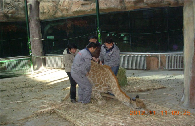 飼養(yǎng)員拖扶長頸鹿 發(fā)布日期:2012-11-20 作者 :