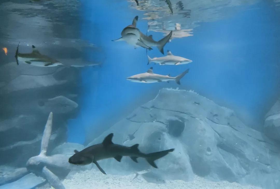 這里聚集了黑鰭鯊,白鰭鯊,豹紋鯊,檸檬鯊四種鯊魚。其中黑鰭鯊和白鰭鯊最好辨認的方式就是看它們的鰭部,但他們的習性是截然不同的,黑鰭鯊喜歡一直游動,白鰭鯊卻是很少游動,喜歡在深海的珊瑚礁里休息;豹紋鯊擁有著豹子一樣的外表,其樣貌非常可愛,性格也比較溫順;檸檬鯊的性格像小朋友一樣,對于它看到的一切都會產(chǎn)生強大的好奇心,其生長速度是非常迅速的,檸檬鯊身長一般在2.4-3米之間。鯊魚,首先我們聽到了它們的名字時候就會不由的產(chǎn)生一種恐懼感,其實大部分的鯊魚不會主動對人類發(fā)出攻擊,所以我們并不需要害怕它們。
