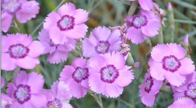 石竹(學(xué)名:Dianthus chinensis)是石竹科石竹屬的多年生草本植物,莖直立,有節(jié),多分枝,葉對生,條形或線狀披針形。花萼筒圓形,花單朵或數(shù)朵簇生于莖頂,形成聚傘花序,花徑2-3cm,花色有大紅、粉紅、紫紅、純白、紅色、雜色,單瓣5枚或重瓣,先端鋸齒狀,微具香氣?;ò觋柮嬷邢虏拷M成黑色美麗環(huán)紋,盛開時(shí)瓣面如碟閃著絨光,絢麗多彩。我們用辛勤與汗水播撒下一道瑰麗的風(fēng)景,播撒下我們心中的希望,希望鄂爾多斯動物園明天更加美好。