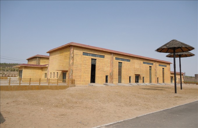 長(zhǎng)頸鹿館:位于非洲區(qū)的靠南地,總建筑面積2444平方米,采用鋼筋混凝土框架結(jié)構(gòu),混凝土砌塊圍護(hù)墻體,仿非洲巖壁GRC外立面裝修。動(dòng)物圈舍一側(cè)與室外場(chǎng)地相通,一側(cè)設(shè)置落地安全玻璃與游客大廳相連,便于游客觀賞。室外沿動(dòng)物活動(dòng)場(chǎng)地設(shè)置通道供游人觀賞。